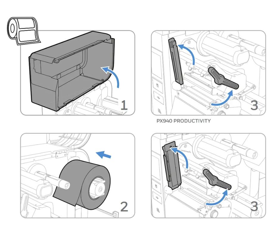 Lưu ý: Không nên lắp giấy hoặc ribbon khi máy đang bật, đặc biệt với dòng máy in công nghiệp như PX940.